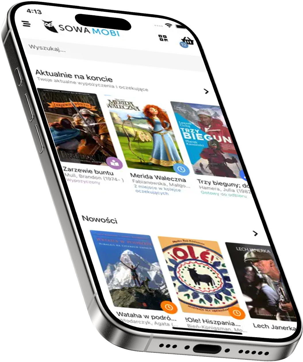 Sowa MOBI – nowoczesna aplikacja mobilna dla bibliotek korzystających z systemu Sowa. Dzięki niej czytelnicy mają zawsze pod ręką katalog biblioteki i dostęp do swojego konta.