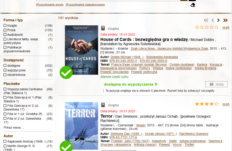 Wyszukiwanie w historii wypożyczeń w OPAC