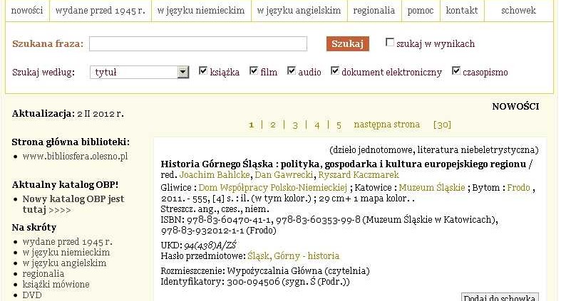 Gminna Biblioteka Publiczna w Oleśnie pożegnała właśnie stary katalog internetowy „Puchacz”, który został zastąpiony nowym w systemie SOWA2/MARC21.