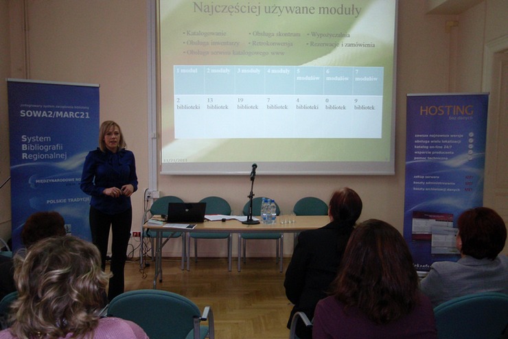 Twórca oprogramowania – Leszek Masadyński omówił korzyści płynące z komputeryzacji bibliotek w najnowszych produktach firmy Sokrates-software. Wśród nich jest zintegrowany system biblioteczny SOWA2/MARC21, który oferuje kompleksowe zarządzanie pracą biblioteki m.in. w wariancie zdalnym (hosting aplikacji i baz danych).