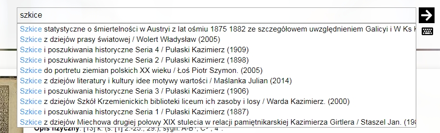- nowe możliwości wyszukiwania według słów i fraz (w cudzysłowie) we wszystkich polach indeksowych (dotychczas było tylko pole autora),