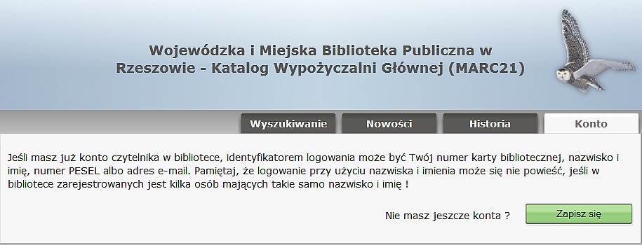 Zapraszamy wszystkie zainteresowane osoby, które nie są jeszcze czytelnikami jednej z tych bibliotek publicznych miasta Rzeszowa, które wdrożyły komputerowy system wypożyczeń, do korzystania z nowej usługi związanej z możliwością samodzielnego, samoobsługowego zapisania się do biblioteki przy wykorzystaniu Internetu.